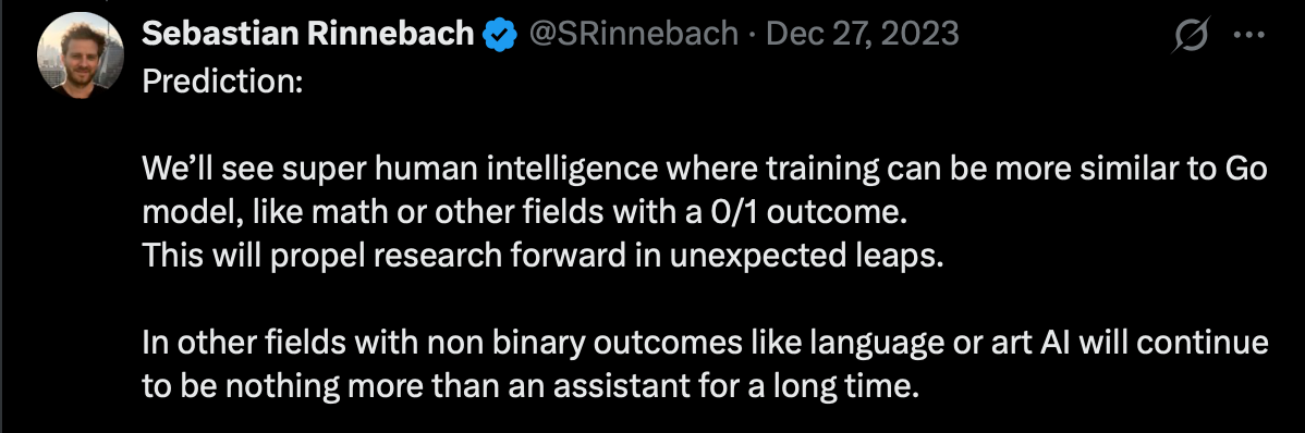 I posted an early version of this idea in late 2023. At the time, I said math would pull away first. That call ended up directionally right. What I had not explained clearly enough was why.